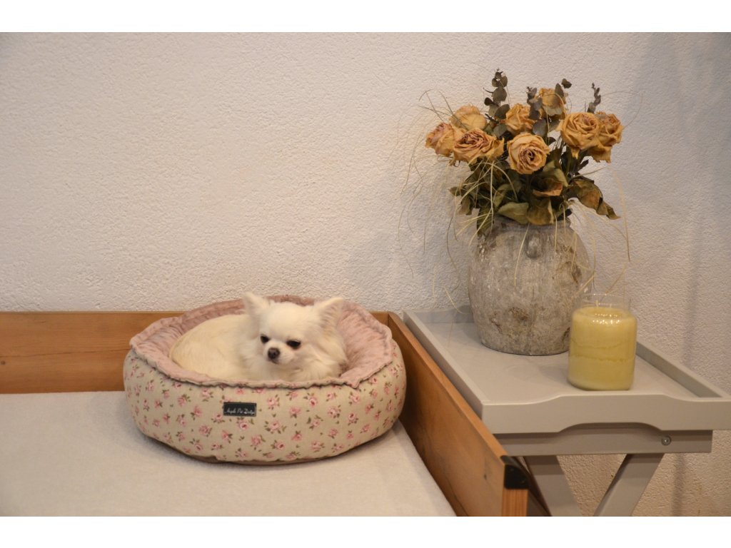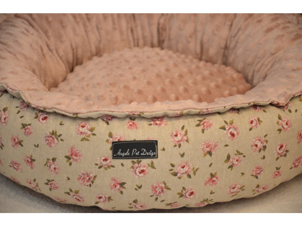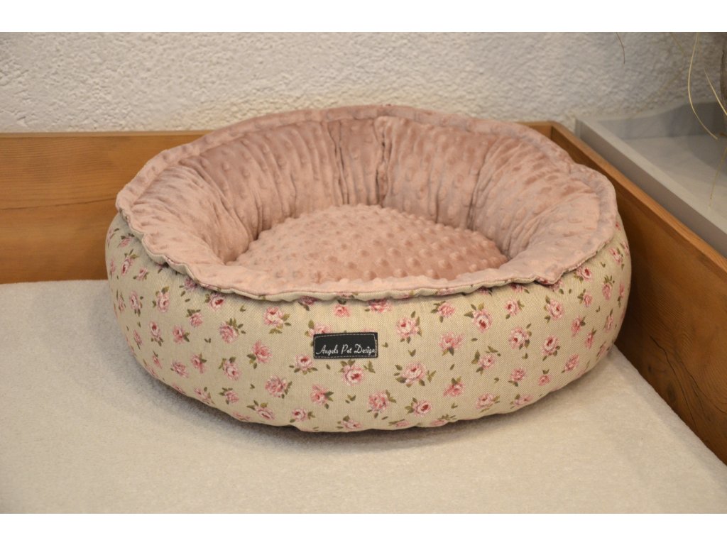 Angels Pets kulatý pelíšek pro pejsky a kočičky, růžový, béžový, motiv růže, 50cm