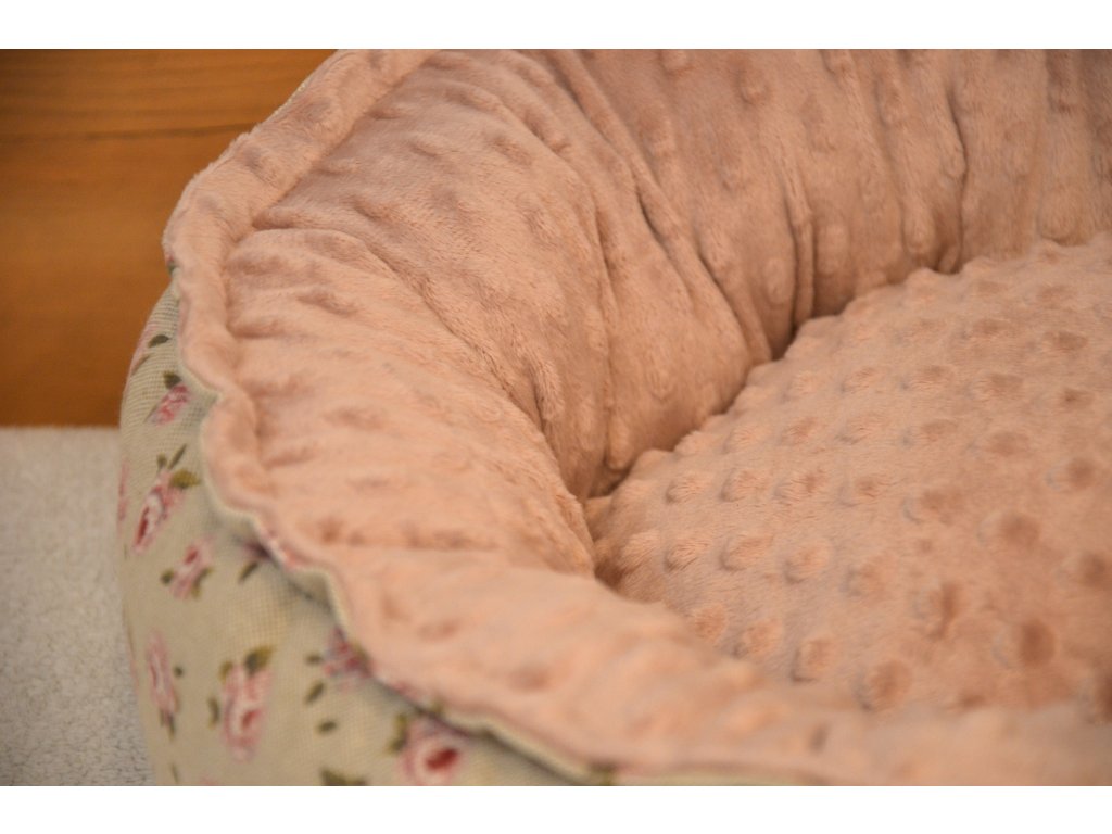 Vnější strana pelíšku: bavlna, barva béžová, motiv růže